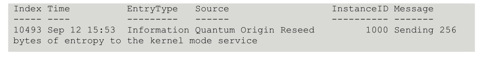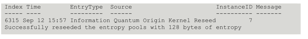 PS C:\> Get-EventLog -LogName System -Source "Quantum Origin Kernel Reseed"