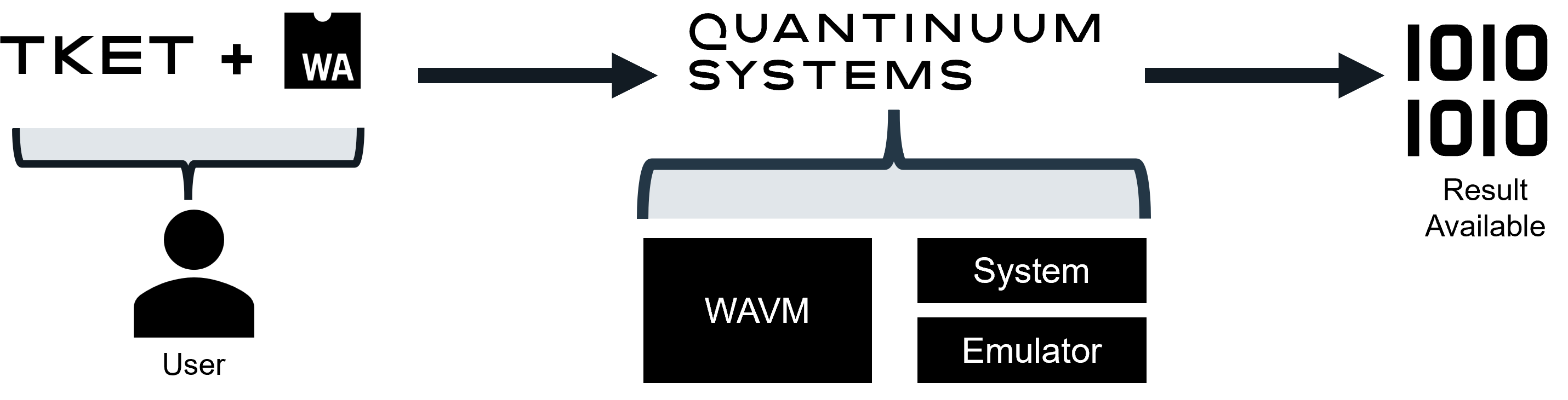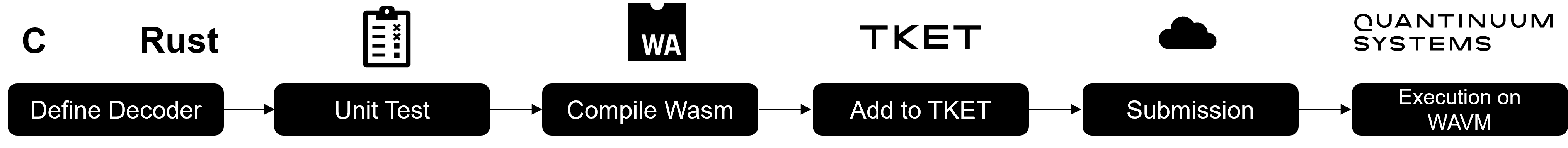 Wasm is an industry standard for sandboxed computing. It offers efficient execution of classical programs and Just-in-Time (JIT) from Wasm to x64/ arm64 is extremely efficient. A WebAssembly Virtual Machine (WAVM) requires as little as tens of microseconds to start or shutdown. Wasm can be generated by composing Rust and C code, followed by a compilation step with the Rust compiler or LLVM toolchain (Clang compiler). Once generated, the Wasm binary can be injected into the TKET workflow. The main benefit is to enable classical compute in the Quantinuum stack during real-time execution of the quantum circuit.